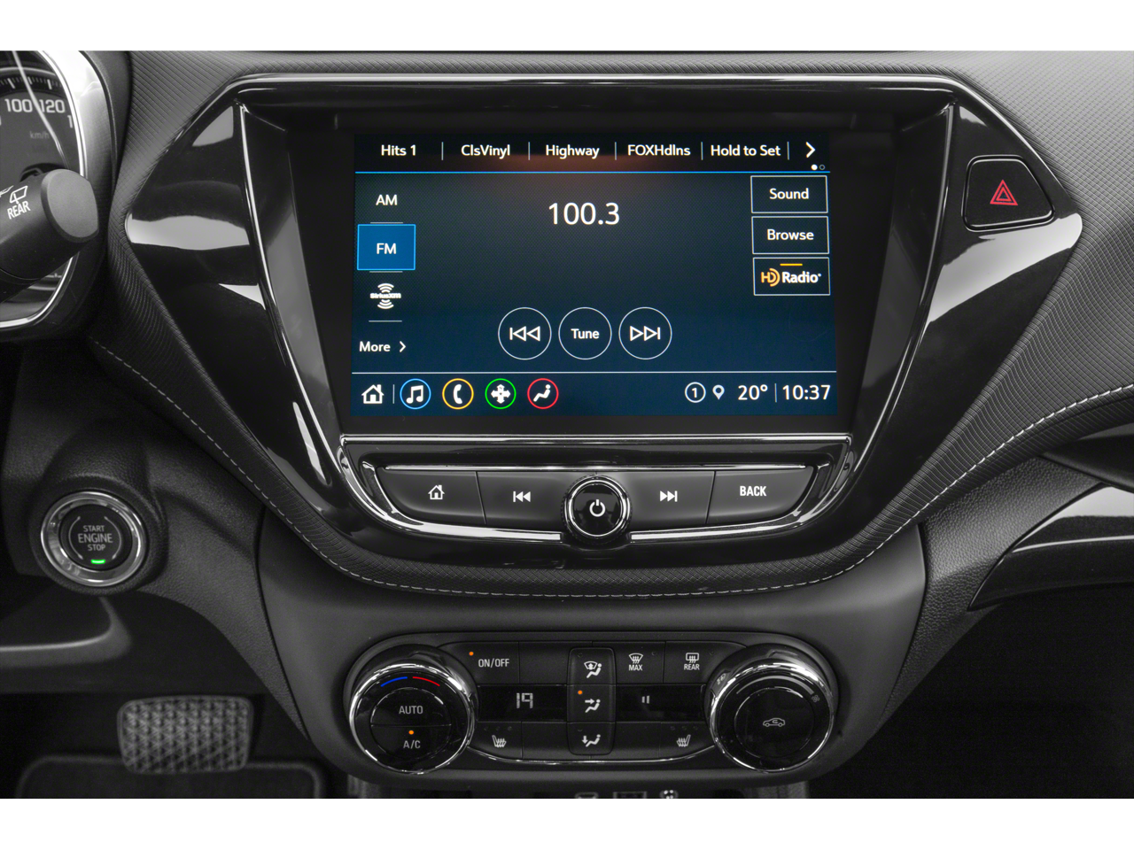 - Audio system, Chevrolet Infotainment 3 Plus system 8" diagonal HD color touchscreen, AM/FM stereo, Bluetooth® audio streaming for 2 active devices, Apple CarPlay and Android Auto capable, voice recognition, in-vehicle apps, cloud connected personalization for select infotainment and vehicle settings.